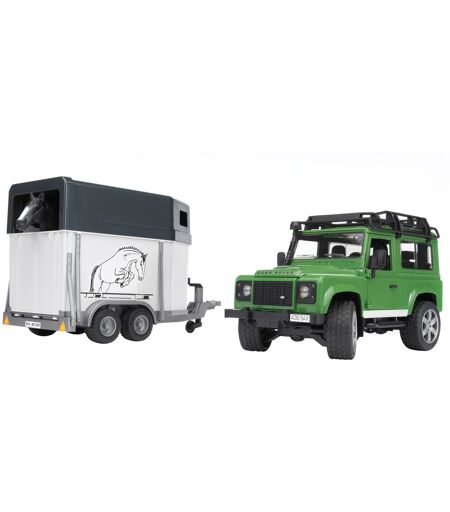 Bruder Land Rover Defender med hestetrailer og en hest 02592, Model køretøj