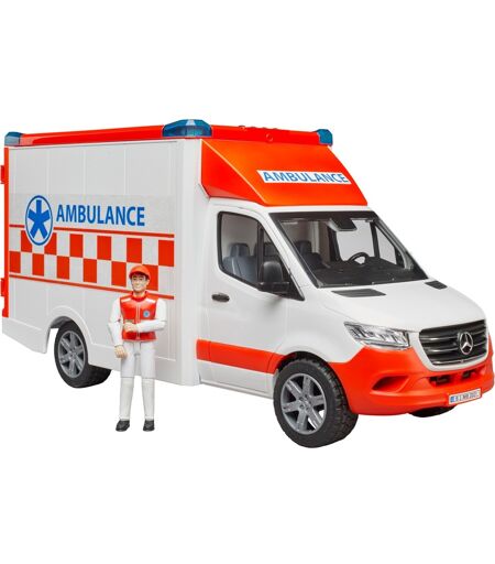 Fremadrettet, effektiv, pålidelig – sådan beskriver Mercedes Benz den nye Sprinter. Selv i den nyeste generation forbliver han den alsidige og altid populære transportprofessionelle. De nyeste Sprintere i en lang række varianter er ankommet til BRUDER''s omfattende sortiment. Emnet udrykningskøretøjer spiller en vigtig rolle hos Bruder. For at afrunde dette interval er den nye MB Sprinter ambulance nu blevet tilføjet. Hvis en mission genoptages, må dette køretøj, der er udstyret med en række funktioner, ikke mangle. Gennem dørene, der skal åbnes, klatrer paramedicineren, der er inkluderet i leveringsomfanget, ind i førerhuset. Med det nye, integrerede Lys & Lyd modul med forskellige sirenesignaler og lysfunktion kan ambulancen nå frem til stedet hurtigt og sikkert. Gennem de åbne bagdøre og sidedør samt det aftagelige tagmodul har den lille paramediciner adgang til det topmoderne behandlingsområde. På den højdejusterbare båre, som kan trækkes ud og skubbes ind igen, finder hver bworld-figur plads til en behandling og kan transporteres sikkert efter brorens motto - ligesom den ægte vare. ...