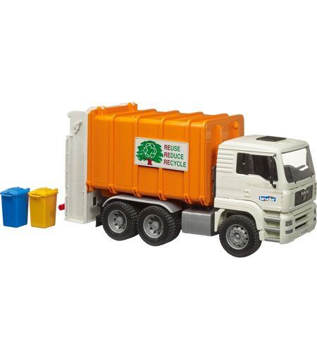 Dette renovationskøretøj er baseret på den velkendte og gennemprøvede MAN TGA. Førerhuset er vipeligt og giver udsyn til motorblokken. Den moderne baglæsser transporterer affaldet gennem to spindler ind i pressekammerets hus - som med originalen. Små skraldespande og affaldscontainere kan tømmes i køretøjet. Bagagerummet tømmes via den åbne bagklap med lås. Leveringsomfanget omfatter allerede 2 skraldespande. ...