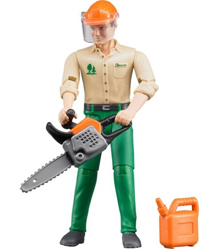 Skovarbejderen med tilbehør er den ideelle tilføjelse til alt skovbrugsudstyr fra sortimentet. "For en sikkerheds skyld" udstyret med en sikkerhedshjelm med visir kan arbejdet påbegyndes med det samme. Derudover er en motorsav og en benzinbeholder inkluderet i sættet for at kunne genopføre en skovarbejders hverdag så realistisk som muligt. Arbejderens hoved samt arme og ben er bevægelige, og tøjet er designet til at matche temaet. ...
