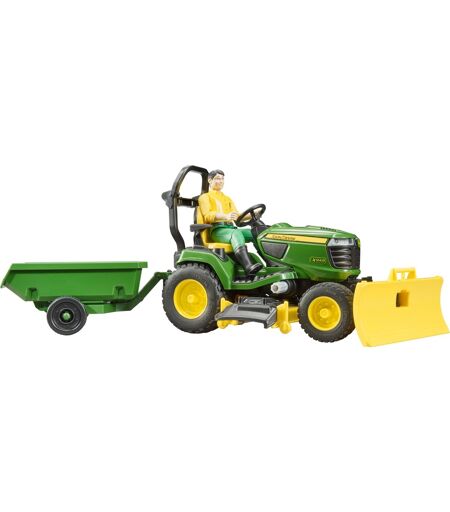 John Deere ride-on plæneklippere er designet til komfort, bekvemmelighed og ydeevne og er de optimale, når det kommer til pleje af græsplænen. John Deere X949 brillerer med ekstraordinær betjenings- og kørekomfort. Denne plænetraktor er den seneste tilføjelse til BRUDER''s brede udvalg af erhvervskøretøjer og kommunale køretøjer. Den meget detaljerede model har roll-over-beslag, der er typisk for denne serie og det moderne cockpit. Den tredobbelte plæneklipper er højdejusterbar og aftagelig. Til transport af værktøj og haveaffald indeholder dette sæt en tiptrailer, der kan kobles på ingen tid. For endnu mere sjov er den rigtige gartner og værktøjer der også - så arbejdet kan starte med det samme. ...