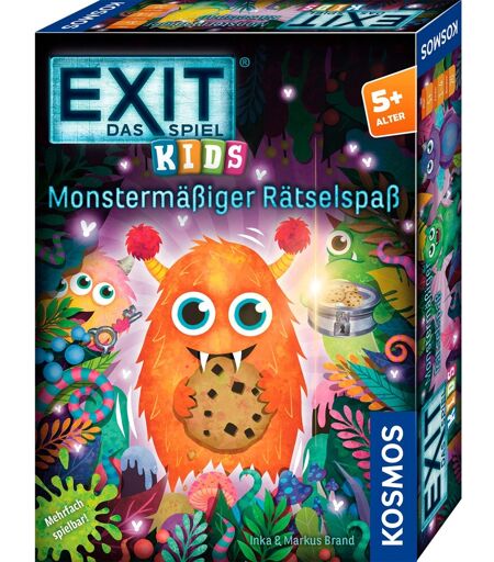 Verden af dette EXIT-spil i alderen 5 og derover er fuld af monstre - og de er meget sultne! I hver ny runde venter nyt puslespil sjovt et hold på 2-4 børn. I vil opleve et spændende eventyr sammen. Hvad kortene, afkodningsdisken og de mærkelige dele er gode til, lærer du i manualen. Et sjovt børnespil med stor spænding og en god introduktion til EXIT-spillenes verden. rnrnIndhold: 36 puslespilskort i stort format, 1 løsningsskive, 10 kagedåsebrikker, 6 nøglebrikker, 21 mærkelige brikker (12 puslespilsbrikker, 3 slimsporkort, 4 yndlingsmadkort, 1 streng, 1 skiftekort), 1 brugsanvisning ...