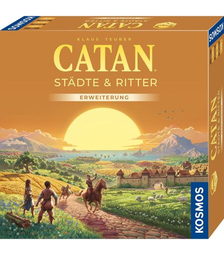 Eftertragtede varer i blomstrende virksomheder får Catan til at skinne i ny pragt. Byer udvides yderligere, bymure og metropoler bygges. Men Catan er i fare, fordi fremskridtet og velstanden på øen tiltrækker barbariske horder, der angriber Catan. Kun med en stærk hær af riddere kan barbarerne blive drevet på flugt og byer reddet fra ødelæggelse. Nye spilelementer skaber yderligere strategiske muligheder, der giver variation og bidrager til sejr. Cities & Knights-udvidelsen byder på et udfordrende og særligt intenst eventyr på Catan for tre til fire spillere fra tolv år og derover. ...