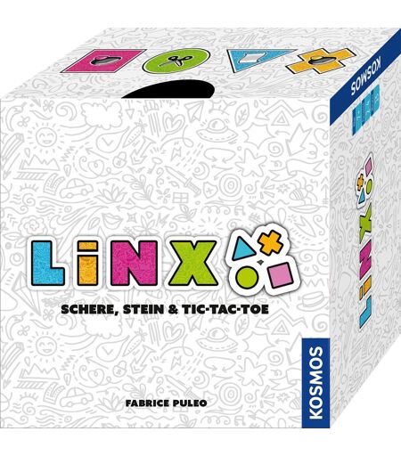 De klassiske spil "Tic-Tac-Toe" og "Rock, Paper, Scissors" i ét – det er "Linx"! Spillerne forsøger at placere tre af de samme brikker i træk. For at gøre dette beslutter de, om de vil placere en ny flise med forsiden opad ortogonalt eller diagonalt ved siden af en eksisterende eller placere den med forsiden nedad for at dække en anden flise. Højdepunktet: Brikker må kun spilles med billedsiden nedad, hvis symbolet overgår brikken nedenunder i henhold til reglerne om "sten, papir, saks, saks". Et smart taktikspil med enkle regler for to til fire spillere på syv år og derover - i et kompakt format til at tage væk eller give væk. ...