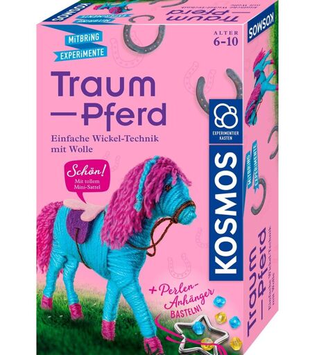 Med dette sæt skabes en farverig hest ved hjælp af indpakningsteknikken, hvis udseende kan designes, som du ønsker. Du skal blot vikle den turkise og lyserøde uld rundt om hesteformen - en børnevenlig stump nål bruges til manen og halen. Bagefter kan der også laves en minisadel af filt: Tag en tur på børneværelset. Bagefter kan der også laves et sødt hestevedhæng med perler og uldrester. ...