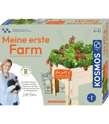 Oplev glæden ved havearbejde med KOSMOS eksperimentsæt "My First Farm" - guidet af den succesfulde forfatter Judith Rakers. Dette sæt er en grøn oplevelse for børn fra 6 år og deres familier, der nyder biologi og natur! I det stabile minihøjbed kommer glæden ved at dyrke dine egne grøntsager frem i stor stil. Her sår, plejer og høster du, hvad dit hjerte begærer, alt efter dit humør. Havearbejde bliver især sjovt, når muldvarpen Günter holder foredrag om plantevækst, og høns fortæller charmerende historier fra deres liv. Legende gåder og håndværksinstruktioner afrunder det livlige læringseventyr. Børnene lærer legende at stikke og dyrke tomater i æggekartoner og kan prøve kræfter med Judith Rakers'' lækre gourmetopskrifter. Med fantasifulde lege og givende håndværksaktiviteter sker der altid noget på gården. Dette unikke KOSMOS eksperimentsæt spænder over et område fra dyrkning og høst til tilberedning af din egen høst - en interaktiv oplevelsesverden, der kombinerer kreativitet, sjov og viden. ...