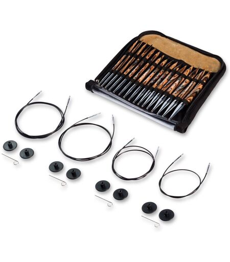 Denna praktiska förvaringsväska innehåller 8 par rundstickspetsar i olika grovlekar, 4 par stickstoppar samt 4 rundstickskablar i olika längder. Instruktioner för montering medföljer. ...