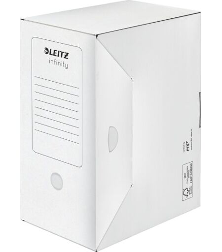 Leitz Infinity arkivæske 150 mmMed denne arkivæske fra Leitz' Infinity-serie, får du en syrefri æske til opbevaring af dokumenter og mapper. Arkivæsken opfylder de internationale ISO 16245 standarder der bekræfter at kasserne kan bruges til langtidsopbevaring af dokumenter. Leitz’ syrefri serie af æsker og mapper fra Leitz er testet og certificeret af papirteknologi-specialister i Tyskland.Denne arkivæske er fremstillet af 100% nyfibre og syrefrit bølgepapir, hvilket sikrer en effektiv beskyttelse af dine dokumenter. Den anbefales til langtidsarkivering af dokumenter i nationale arkiver, museer, biblioteker og private organisationer.Arkivæsken er udstyret med en dobbelt lukkeklap, som giver en sikker beskyttelse af indholdet i æsken, styrker fingerhul og forhindrer uønsket åbning af æsken. Dertil har æsken en perfekt højde til arkiveringshylder, hvor æsken kan opbevares både vandret og lodret. Og med det innovative samlingsdesign, kan du hurtigt færdigsamle kassen på få sekunder, hvilket sparer dig både tid og anstrengelser!Ved at vælge dette produkt, støtter du ansvarligt brug af verdens skove, idet arkivæsken er FSC®-certificeret.SpcifikationerFarve: HvidType: Arkivæske til A4Til A4-papirer og dokumenter opbevaret i Leitz Infinity omslagPasser til Leitz Infinity arkivkasserMateriale: 100% nyfibreSyrefri bølgepap ifølge ISO 16245 for at beskytte dokumenterneMål (BxHxD): 150 x 255 x 330 mmVægt: 0,17 kg100% recirkulerbarFSC®-certificeret bølgepapProducentens varenummer: 60920000 ...