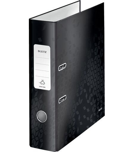 Leitz 180 WOW Brevordner – lader din personlige stil skinne igennemLeitz WOW er en trendy og iøjefaldende serie af farvestrålende kontorprodukter i høj og anerkendt kvalitet. WOW-serien kommer i forskellige energiske farver, som udstråler og signalerer en moderne og kreativ stil og de lækre materialer, kombineret med det sofistikerede design, afspejler produkternes gode kvalitet. Med WOW kan du give din arbejdsplads på kontoret, i firmaet eller i hjemmet et vælg af inspirerende farvenuancer og du kan give dit skrivebord et kreativt og farvestrålende look, som flot reflekterer din personlige stil. Lige meget hvilken stil du har, kan du farvekoordinere dit skrivebordstilbehør, så det reflekterer din personlighed og samtidig hjælper dig til at nå dine mål. Farve: SortRygbredde: 80 mmFormat: A4Kapacitet: 600 A4-ark Materiale: Robust og kraftig FSC®-mærket karton-kerne dækket med printet papir og afsluttet med en klar folie for at beskytte omslaget og give et attraktivt designFingerhul, rado ringe og ryketiket sikrer nem håndtering og organiseringUnik patenteret mekanisme, der åbner 180° og har 50% større åbning, så der kan arkiveres 20% hurtigere5 års garanti på lukkemekanismenMål (BxHxD): 80 x 318 mm x 285 mm ...