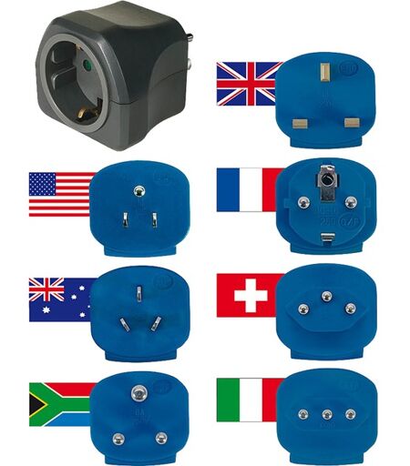 Verdenssæt til brug i over 150 lande. Stikkene er jordede, hvilket giver højeste sikkerhed, og leveres med en stofpose til opbevaring af adapterne. • Jordede • 16 A • 7 adaptere/stik • Stofpose • Børnesikre ...