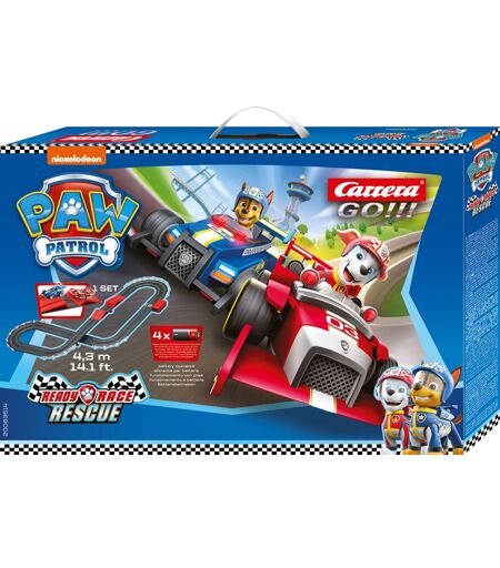 På den 4,3 meter lange racerbane kører denne Carrera GO!!! PAW Patrol - Ready, Race &Rescue Sæt den elskelige, men noget pudgy Dalmatiner Marshall i sin røde racerbil mod sin ven Chase. Chase er en schæferhund, der kan lide at have roret i hånden og starter med sin blå racerbil. Hvordan ser det ud i dette løb? Kan Marshall stå op mod sin kammerat og være det første PAW Patrol-medlem, der ankommer til stedet? Interaktive spilfunktioner med lys, lyd og musik øger det sjove ved spillet samt skihoppet, som hvert køretøj med en skala på 1:43 skal krydse en gang i løbet af en omgang. Takket være den attraktive PAW Patrol licens handler designet om det modige hundehold. Type C-batterier er nødvendige for at styre køretøjerne via forbindelsesskinnen. Batterier er ikke inkluderet i sættet. ...