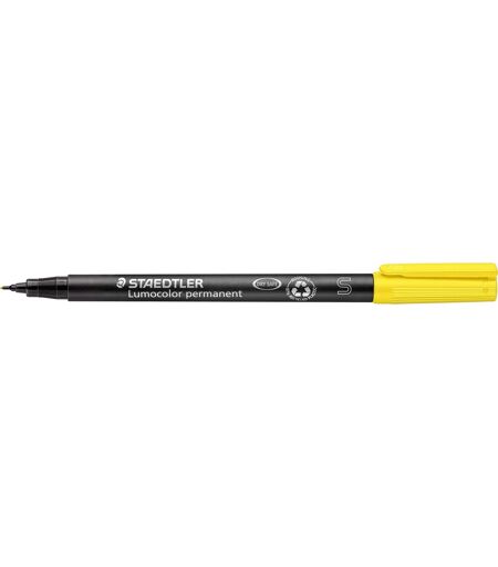 Staedtler Lumocolor 313 – skriv på mange overfladerPermanente markere fra Staedtler er gode til en lang række formål. Lumocolor 313 serien har en smal bredde, med en skriftstreg på ca. 0,4 mm, og indeholder permanent blæk.Med Lumocolor 313 kan du skrive på en lang række overflader: Pap, overheads, plastik, metal, boblefolie og foam, glas og porcelæn, træ og sten. Markeren indeholder blæk uden kemiske stoffer såsom xylen og toluene og du slipper derfor for lugten af sprit. Da blækket tørrer hurtigt, tværes skriften ikke ud og den er derfor god at bruge hvis du er venstrehåndet, da hånden ikke smudses til. Det hurtigttørrende blæk, gør desuden markeren særligt velegnet til brug på overheads. Blækket er DRY SAFE, så du er sikret en marker der kan tåle at ligge uden hætte, uden at den tørrer ud. Dertil er den sorte og den brune marker i serien lysægte og den sorte er tilmed også vejrbestandig. Pennehylsteret er fremstillet af 97% genanvendt plast og derudover er markeren designet med det særlige AIRPLANE SAFE system, som gør, at du kan have den med i kufferten uden at markeren lækker når den udsættes for tryk. Farve: GulStregbredde: S – superfine (ca. 0,4 mm)Spids: RundPennehylster, hætte og ende er fremstillet af 97% genanvendt plastMærket med ISO 14021Permanent blækHurtig tørring ...