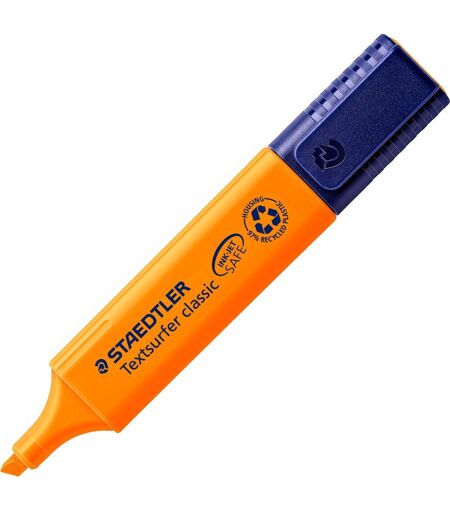 Staedtler klassiske highlightere De klassiske textsurfere fra Staedtler er gode overstregningspenne i flotte og stærke farver. Textsurferne har en ultrablød skrå spids, med en skriftstreg på ca. 1-5 mm og indeholder vandbaseret og hurtigtørrende blæk. Pennen er fremstillet i 97% genanvendt plast og kan nemt genopfyldes ved hjælp af en smart refillstation. Med de klassiske textsurfere kan du lave overstregninger på de fleste typer papir og blækket er INK-JET SAFE, så de ikke udtværer inkjet udskrifter og håndskrevne tekster med kuglepen. Textsurferne giver en klar og fluorescerende overstregning, så du altid er sikker på, at de vigtige pointer og stikord fremstår helt tydeligt. Highlighterne er desuden designet med det særlige AIRPLANE SAFE system som gør, at du kan have dem med i kufferten uden at de lækker når de udsættes for tryk. Farve: Orange Stregbredde: Fra 1 mm til 5 mm Spids: Skråskåret Vandbaseret blæk Pennekrop i 97% genanvendt plast Staedtler er en af verdens førende producenter af skriveartikler. De gode produkter produceres i Tyskland og skabes gennem en kombination af tradition og nytænkning, håndværk og teknologi, design og funktionalitet. ...