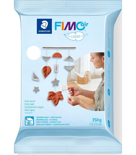 Modelleringsler til kreativ udfoldelse Med Fimo Air Light ler får du et utroligt blødt og let modelletingsmateriale, som er meget nemt at arbejde med, så du nemt kan slippe fantasien og kreativiteten løs og kan lave unikke kunstværker på et øjeblik. Farve: Hvid Indhold: 350 g Hærdes ved lufttørring i 24 timer Fjerlet og ekstrablød konsistens Fimo Air Light ler klistre ikke og er utroligt behageligt at røre ved, pga. den fjerlette og bløde konsistens. Leret består af 80% naturlige stoffer og er et oplagt valg til både kunstnere og hobbybrugere, ligesom det med fordel kan bruges til forskellige kreative formål og undervisningsbrug i skolen, børnehaven, fritidshjemmet eller SFO’en. Selvhærdende ved stuetemperatur I modsætning til andre typer af Fimo ler skal Fimo Air Light ikke hærdes i ovnen, men skal i stedet overlades til lufttørring ved stuetemperatur. Efter 24 timer vil leret være tørret helt op og være fuldstændig hærdet. Efter tørring kan emnet bearbejdes og du kan f.eks. male, lakere og dekorere din kreation eller du kan file den i facon og bore huller til ophæng osv. ...