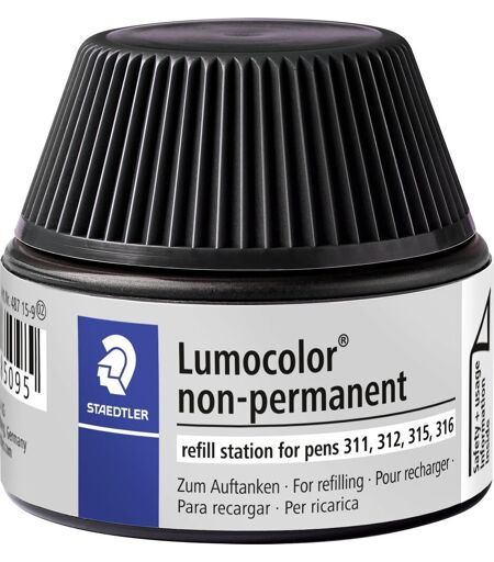 Staedtler refill til Lumocolor Non-permanent Marker Blækrefillerne fra Staedtler er den perfekte løsning til genopfyldning af dine yndlings Staedtler penne. Med denne refill station er genopfyldningen enkel og effektiv. En refill indeholder 15 ml blæk, hvilket svarer til 6-8 genopfyldninger, så dine penne altid er klar til alverdens skriveopgaver. Farve: Sort Indhold: 15 ml 6-8 genopfyldninger pr. refillstation Passer til: Lumocolor 311, 312, 315, 316 Produceret i Tyskland Genopfyld nemt din yndlingspen med en refillstation Du får her en praktisk refillstation, som indeholder 15 ml blæk, hvilket svarer til at du kan genopfylde din marker 6-8 gange. Refillstationen er fremstillet i PP-plast og sikrer en nem og ren genopfyldning. Hvordan bruges Staedtler refillstationen? Det er meget simpelt at genopfylde sine Staedtler penne ved hjælp af en refillstation. Sæt pennen i refillstationen og et par minutter senere er pennen igen skriveklar. Ønsker du en fuld genopfyldning, skal du lade pennen stå i stationen i 3-4 timer, hvorefter pennen vil være helt opfyldt. Det er umuligt at overfylde dine penne, da pennen kun kan suge op til dens maksimum indhold. Køb refiller, spar penge og brug dine penne igen og igen Ved køb og brug af refiller til dine markere, sparer du både penge og er samtidig med til at gøre op med ”køb-og-smid-ud” kulturen, så du b.la. er med til at mindske forbruget af f.eks. plastik, da du kan genbruge din yndlingspen igen og igen, fremfor at skulle købe en ny hver gang den løber tør for blæk. Staedtler - førende producent indenfor skriveartikler Staedtler er en af verdens førende producenter af skriveartikler. De gode produkter produceres i Tyskland og skabes gennem en kombination af tradition og nytænkning, håndværk og teknologi, design og funktionalitet. ...
