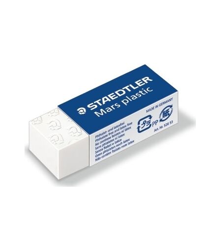 Staedtler Mars Plastic 526 – et verdensberømt viskelæderMars Plastic er nok et af de Staedtler produkter, der møder den største genkendelse. Viskelæderet indeholder hverken pthlater eller latex og det bliver aldrig for gammelt. Med Mars Plastic får du et viskelæder, som visker præcist og rent, med et minimalt omfang af smulder. Mål (LxBxH): 40 x 19 x 13 mm ...