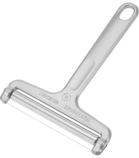 Westmark Osteskærer med rulle, aluminium Westmark Osteskærer Rollschnitt er det ideelle værktøj til at skære bløde og halvhårde oste som Gouda og Emmental i perfekte skiver. Med en skarp skærestreng af rustfrit stål kan du nemt opnå ensartede skiver, og tykkelsen kan justeres ved at ændre vinklen, hvormed skæreren holdes. Det afrundede aluminiumshåndtag ligger behageligt i hånden og giver kontrol og præcision under skæringen. Osteskæreren er ikke egnet til opvaskemaskine, men kan let rengøres ved håndvask. Specifikationer: Materiale: Aluminium og rustfrit stål Farve: Sølv Længde: 13,9 cm Bredde: 10,9 cm Højde: 1 cm Anvendelse: Til skæring af bløde og halvhårde oste Rengøring: Håndvask anbefales Westmarks kvalitetsredskaber – Made in Germany Westmark er kendt for at levere køkkenredskaber af høj kvalitet, der kombinerer funktionalitet og holdbarhed, hvilket gør dem værdsatte af både hjemmekokke og professionelle i mange år. ...