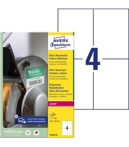 Avery B3483-50 Etiketter 105x148 Mm 200 Stk.