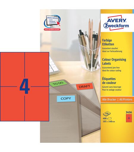 Avery 3456 Etiketter 105x148 Mm Rød 400 Stk.
