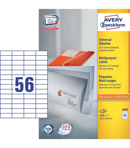 Avery 3668 Etiketter 52,5x21,2 Mm 5600 Stk.
