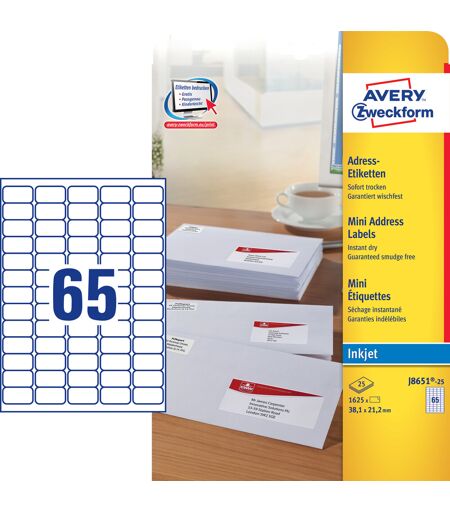 Avery J8651 Etiketter 38,1x21,2 Mm 1625 Stk.