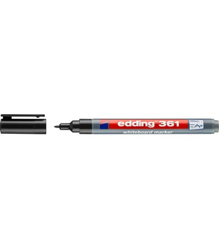 Edding 361 – tynd whiteboard pen med hurtigtørrende blækEdding er kendetegnet ved gode og holdbare kvalitetsprodukter med en lang levetid. Edding har en kultur og en knowhow, som er helt unik og de udvikler konstant nye og innovative produkter, som kan løse nærmest ethvert specialiseret problem indenfor markere, penne og tusser. Med Edding 361 får du en pen med rund spids og en fin stregbredde på 1 mm som giver en præcis og tynd linje på whiteboards og andre glatte overflader som f.eks. glas og porcelæn.Blækket i pennen er hurtigtørrende og kan nemt fjernes fra whiteboards og glatte overflader, uden at efterlade synlige spor. Pennen er desuden produceret med ”Open for days” funktion, hvilket betyder at den kan tåle at ligge uden hætte i flere dage uden at blækket tørrer ud. Edding 361 er ideel at bruge til f.eks. præsentationer, fremlæggelser, konferencer og undervisningsbrug på alle slags whiteboardtavler, hvor der er behov for præcise og fine linjer og markeringer. Markeren har desuden et let design, som gør den behagelig og nem at bruge og er samtidig produceret med en praktisk clips i hætten, så den altid er let at have med sig omkring.Farve: SortStregbredde: 1 mmSpids: Rund”Open for days” funktion Hurtigtørrende ...