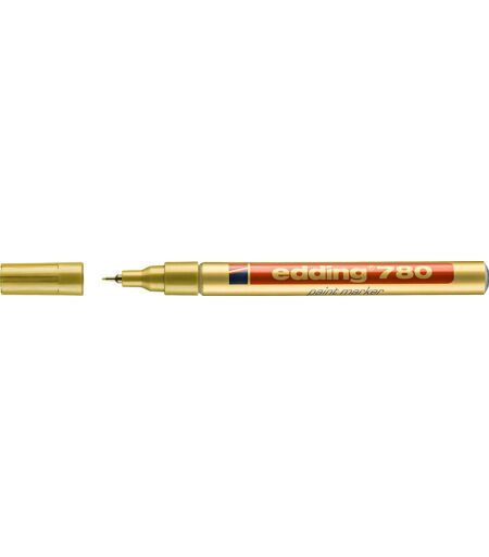 Edding 780 - alsidig og modstandsdygtig universalmarkerEdding er kendetegnet ved gode og holdbare kvalitetsprodukter med en lang levetid. Edding har en kultur og en knowhow, som er helt unik og de udvikler konstant nye og innovative produkter, som kan løse nærmest ethvert specialiseret problem indenfor markere, penne og tusser. Med Edding 780 får du en marker med en ekstra tynd rund spids og en meget fin stregbredde på 0,8 mm som giver en yderst holdbar og slidstærk markering på langt de fleste overflader, som f.eks. metal, plastik, glas, træ, papir, karton og pap.Blækket i markeren er permanent og minder meget om maling, da blækket lægger sig ovenpå overfladen ligesom maling gør ved påføring, hvilket gør markeren velegnet på selv mørke og transparente materialer, hvor andre markere kan have svært ved at følge med.Blækket er hurtigtørrende, vandafvisende og yderst varmeresistent op til 400°C (farverne hvid og sølv helt op til 1000°C). Dertil er markeren vejrbestandigt, hvilken betyder at den bibeholder farveintensiteten i alt slags vejr og blækket er ydermere særligt modstandsdygtigt overfor f.eks. alkohol. Du vil derfor altid kunne skrive med en læselig og synlig skift i en bred vifte af brancher, også dem med mere komplekse og specifikke krav og udfordringer.Blækket er samtidig produceret uden xylen og toluene, hvilket gør markeren meget lugtsvag så du slipper for den skarpe lugt af sprit når markeren bruges. Markeren skal rystet inden brug og blækket skal forsigtigt pumpes ned til spidsen før markeren er klar til brug.Markeren har desuden et robust aluminiumshylster, som giver et godt og solidt greb og gør den behagelig og nem at bruge. Farve: GuldStregbredde: 0,8 mmSpids: RundPermanent malingslignende blækHurtigtørrendeVarmeresistent op til 400°CVejrbestandig ...