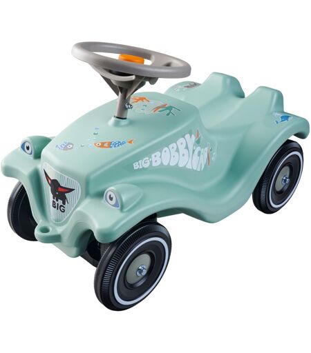 Bobby Car Classic Green Sea er klar til en masse køreglæde! Dette fortryllende køretøj i salvie og orange med farverige havmotiver får børns øjne til at skinne fra 12 måneder. Bobby-bilen, der glæder både piger og drenge, imponerer med sit ergonomiske sæde og en knæfordybning, ideel til lange ture. Udstyret med et sikkert rat og et knirkende horn fremmer det legende motorudvikling. Dette slidstærke legetøj er fremstillet i Tyskland og er TÜV-testet, UV-resistent og ideelt til indendørs og udendørs brug. De holdbare BIG hjul og alsidige trækmuligheder giver endnu flere måder at spille på. Den miljøvenlige, holdbare Bobby Car er fremstillet af genanvendelig plast og tilbyder køreglæde for modige opdagelsesrejsende, samtidig med at den beskytter vores planet. ...