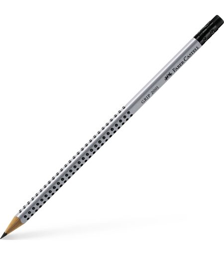 Faber-Castell Grip Blyant – brudsikker kvalitetsblyant med god skrivekomfort Grip 2001 blyant fra Faber-Castell er en super god grafitblyant med en trekantet, ergonomisk form og en blød og skridsikker gribezone, der sikre dig en god skrive- og tegneoplevelse. Den trekantede udformning sikre en god skrive- og tegnekomfort, da blyanten ligger godt og ergonomisk korrekt i hånden, så du undgår at blive øm eller træt i hånden mens du skriver. Samtidig sikre de bløde gribedupper at du kan tegne løs uden at fingrene glider. Dupperne er lavet af vandbaseret lak og kan nemt spidses sammen med resten af blyanten. Grip blyanten er yderst brudsikker da blystiften er integreret med træet omkring den, så den kan modstå hårdt tryk og trykket fra længere tids skrivning og tegning. Faber-Castell Grip blyanten er fremstillet af FSC-certificeret træ, belagt med en vandbaseret lak. Hårdhed: HB Farve: Sølv og sort Inkl. viskelæder i toppen Ergonomisk greb Fremstillet af FSC-certificeret træ ...