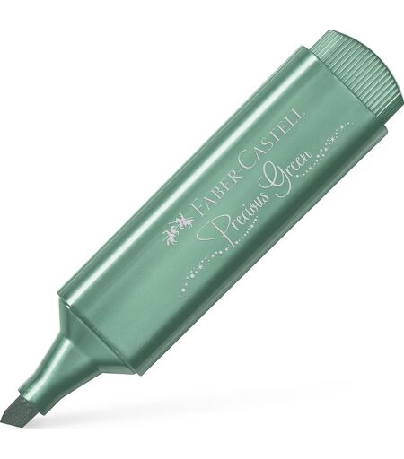 Faber-Castell Highlighter – textliner med glittereffekt Tilføj et strejf af glamour til dine noter med de metalliske textlinere fra Faber-Castell med flotte og strålende glittereffekter. Med sin unikke skinnende og glitrende metallicfarve fremhæver denne overstregningspen dine vigtigste punkter med stil. Den skrå spids giver dig mulighed for at variere stregbredden i 3 forskellige stregbredder – 1, 2 og 5 mm – så du kan markere præcist, som du ønsker, blot ved at vinkle spidsen forskellige mod papiret. Blækket er hurtigtørrende og giver et strålende og glimtende skær på både standardpapir og specialpapir. Farve: Grøn Faber-Castell farve: Precious Green Stregbredde: Fra 1 mm til 5 mm Spids: Skråskåret Vandbaseret blæk med flot glimmereffekt Perfekt til kreative formål De metalliske highlightere er ikke kun gode til klassiske overstregninger, de er også særdeles velegnet som kreative markører og vil give nogle utroligt flotte effekter i f.eks. din bulletjournal, dagbog eller til kreativ kalligrafi. Farverne har den fineste metalliske farve med strålende glitter, som bliver forstærket når lyset rammer og giver en flot wow-effekt til dine overstregninger og kreative dekorationer. ...