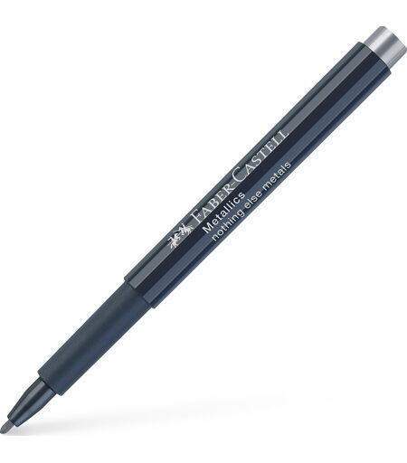 Faber-Castell Metallics Marker – perfekt til kreativ dekoration Fremhæv din kreativitet med Metallics markere fra Faber-Castell. Denne marker tilbyder en unik, metallisk og elegant streg, som er perfekt til dekoration, scrapbooking eller indbydelser. Metallics leverer præcise og klare linjer på både lyse og mørke baggrunde og kan bruges på alt fra papir og karton til plast, folie, porcelæn, glas, metal, træ og sten. Blækket giver dine dekorationer en førsteklasses metallisk effekt og tørrer samtidig hurtigt op og sikrer, at dine kreationer forbliver smudsfrie og skinnende, da markeren er modstandsdygtig overfor både pletter og vandstænk. Farve: Sølv Faber-Castell farve: Nothing else metals Spids: Rund Stregbredde: 1,5 mm Vandbaseret og lugtfri blæk Førsteklasses metallisk effekt Modstandsdygtig overfor pletter og vandstænk Modstandsdygtig og kreativ pen med metallic-blæk Faber-Castell Metallics indeholder et særligt vandbaseret metallic-blæk som er lugtfrit og som ikke siver igennem papiret. Efter tørring er farverne modstandsdygtige over for både plette og vandstænk og farven kan endda gøres vandfast ved at udsætte den for varme i f.eks. en ovn ved 160 °C i 30 minutter. Desuden er det ikke nødvendigt at pumpe eller ryste pennen inden brug, da blækket flyder let og jævnt gennem den 1,5 mm brede fiberspids, så du kan begynde at tegne med det samme. ...