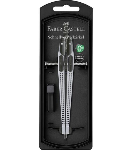 Faber-Castell Grip Passer – præcision møder bekvemmelighed Grip passeren fra Faber-Castell Grip er en smart hurtigindstillingspasser, som er designet til præcise og nøjagtige cirkler, hvad enten du arbejder med geometri, teknisk tegning eller kunst. Passeren kommer med en praktisk hurtigindstillingsmekanisme, som gør det let at justere og låse radius hurtigt. Med det ergonomiske greb og solide metalben sikrer den pålidelighed og brugervenlighed hver gang. Farve: Sølv Materiale: Metal og plast Maksradius: 390 mm Ergonomisk designet greb 1 ekstra stift og 2 ekstra blyminer medfølger Leveres i praktisk opbevaringsetui Hurtigindstillingsmekanisme, ergonomisk greb og holdbar konstruktion Faber-Castel Grip passer har en hurtigindstillingsmekanisme, for en præcis radiusjustering så du nemt kan lave flotte og præcise cirkler. Dertil sikrer det ergonomiske greb et godt og stabilt greb og den solide og holdbare konstruktion med let justerbare ben, samt skridsikre nåle og blyklemmer giver en nøjagtig og præcis linjeføring, som giver perfekte cirkler på ingen tid. ...