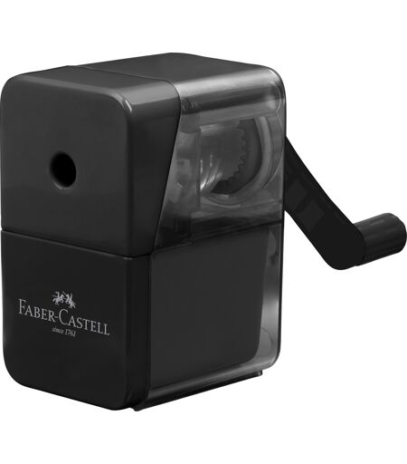 Faber-Castell Blyantspidser Denne blyantspidser fra Faber-Castell er det ultimative værktøj for både studerende og professionelle, der kræver en præcis og skarp spids på deres blyanter. Denne robuste og pålidelige blyantspidser er designet til at håndtere både almindelige blyanter med en hård og robust spids og til farveblyanter som har en blødere spids som kræver en mere let og jævn spidsning, så du undgår at blyet knækker. Blyantspidseren har en kraftig skæremekanisme, som sikrer en skarp og jævn spidsning og spidseren kan bruges til både runde, trekantede og sekskantede blyanter med en diameter op til 8,4 cm, så du altid kan have en spidset blyant klar når der er behov for det. Farve: Sort Materiale: Plast og metal Maks spidsediameter: 8,4 mm Kan bruges til runde, trekantede og sekskantede blyanter Ergonomisk design med manuelt håndtag for let betjening Gennemsigtigt opsamlingskammer, der nemt kan tømmes ...