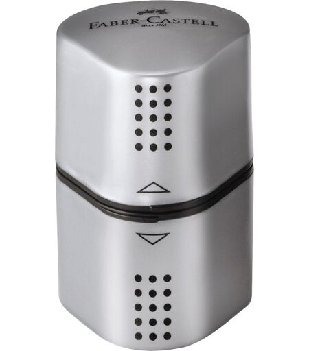 Faber-Castell Grip Trio Blyantspidser – holder dig altid skarpGrip trio blyantspidseren fra Faber-Castell er super praktisk og alsidig – du får nemlig tre blyantspidsere i én, så dine blyanter altid står skarpt og er klar til brug. Blyantspidseren kan bruges til blyanter i forskellige størrelser og tykkelser, da spidseren har 3 forskellige huller: et til almindelige blyanter, et til jumbo blyanter og et til farveblyanter.Grip trio har et enkelt og elegant design, som samtidig er super praktisk. Udformningen sikre f.eks. at blyantsspidsen er særligt beskyttet mod brud når blyanten spidses. Samtidig er den produceret med et rummeligt dobbelt hylster til spidserester, som giver masser af tid til skrivning og kreativt arbejde før det skal tømmes.3-i-1 blyantspidserFarve: SølvStor beholder til affald ...