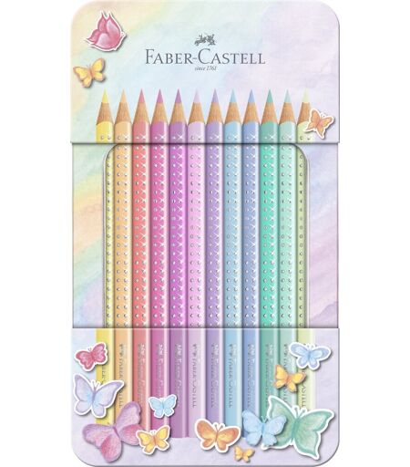 Färgpennor Sparkle Pastellfärger Metalletui, 12-p FSC, Faber-Castell