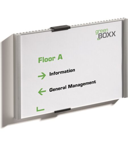 Durable Info Sign Skilt – stilrent og enkelt designMed Info Sign skilte fra Durable får du en serie i stilrent design, som passer godt ind i de fleste arbejdsmiljøer. Du kan bruge skiltet til mødelokaler, kontorer og generelt på arbejdspladser hvor du ønsker en identifikation af f.eks. lokaler, afdelinger og personer – du sætter blot skiltet op ved siden af døren, så man hurtigt og nemt kan finde den afdeling, det lokale eller den person man søger. Skiltet monteres nemt på væggen med de medfølgende skruer eller klæbepuder.Det stilrene og enkle design i aluminium passer naturligt og pænt ind i de fleste arbejds- og kontormiljøer og den refleksfri frontplade i akryl, samt det medfølgende neutrale hvide indstik gør skiltet let anvendeligt og læseligt. Dertil kan du selv designe og personliggøre dine skilte ved at bruge en af de gratis skabeloner på www.duraprint.eu.Farve: SølvMål (HxB): 210 x 149 mmFormat: A5Refleksfri frontpladeIndstik, skruer og klæbepuder medfølger ...