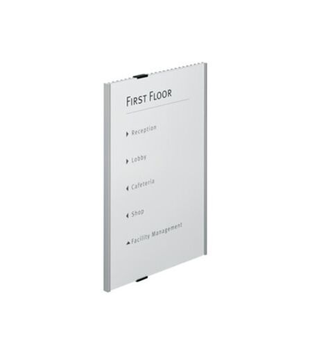 Durable dørskilt/mødeskilt Info Sign, 297x420 mm INFO SIGN er en serie af elegant design, som passer til de fleste miljøer. Dørplade af aluminium (297x420mm) med reflekterende front bord i akryl. Leveres med skruer, klæbepuder og plug-neutral papir. ...