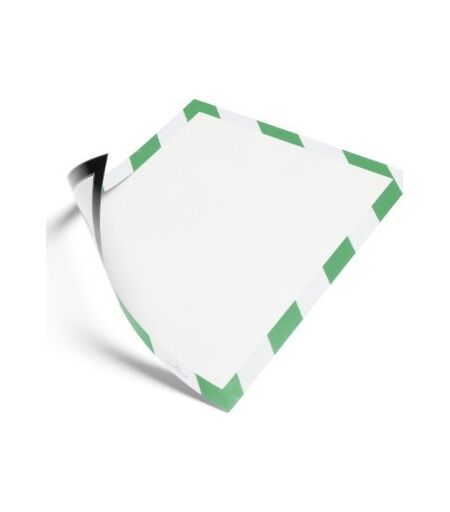 Duraframe Magnetic Security - magnetisk informationsramme i A4-formatMed Durable Duraframe Magnetic Security får du en magnetisk ramme med en transparent forside, som er den ideelle løsning til opsætning af advarselsskilte og sikkerhedsinformationer på metaloverflader. Rammen er oplagt til brug på f.eks. kontorer, caféer, restauranter og fabrikker, samt i butikker, uddannelsesinstitutioner og produktionsafdelinger, hvor der er behov for nemt og hurtigt at kunne udskifte informationsskilte og hvor der er behov for at fremhæve vigtige sikkerhedsinformationer og advarsler.Duraframe Magnetic Security har farver svarende til ISO 3864-4 for advarselsfarver, hvilket gør rammerne til det oplagte valg til sikkerheds- og advarselsskilte og informationer. Denne grønne ramme er f.eks. god til at fremhæve førstehjælp og evakueringskort.Rammen er oplagt til metaloverflader såsom whiteboardtavler, skabe og metalvægge. Du skal dog være opmærksom på, at overfladen, som rammen skal klæbe på, skal være helt ren samt fri for fedt og fugt, for at rammen sidder ordentligt fast.Du kan nemt åbne rammen, idet rammekanten er magnetisk, hvilket gør det nemt og hurtigt at udskifte rammens indhold så ofte som nødvendigt. Farve: Grøn/hvidFormat: A4Type: Magnetisk rammeYdermål: 236 x 323 mm.5 stk. pr. pose ...
