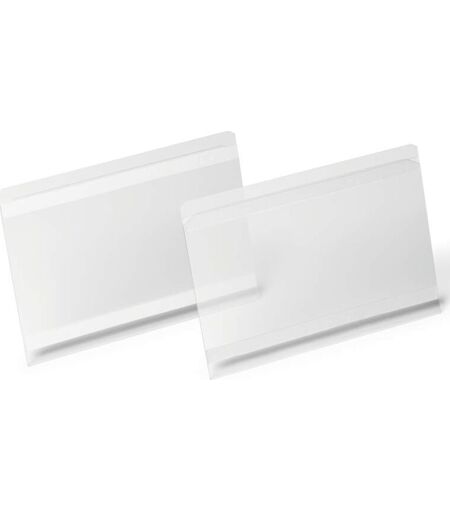Selvklæbende lagerlommer i kraftig plastDurable lagerlommer er fremstillet til klar og tydelig mærkning af butiks- og lagerreoler, skabe, døre mm. De er med til at strømline arbejdsprocessen på lagre, butikker og produktionsanlæg da de kan aflæses med en scanner.Etiketterne er nemme at udskifte da holderen er åben i toppen og på begge sider. Derudover har den skrå hjørner så det er nemt at komme til etiketten. Lommen monteres let ved at fjerne papiret fra tapestrimlen og så kan lagerlommen efterfølgende fjernes uden at efterlade limrester efter endt brug. Derudover så er de dækket af en gennemsigtig plastfilm som beskytter lagerlommen mod ridser under transport og opbevaring. Plastfilmen fjernes nemt når produktet er klar til brug. En gratis skabelon til etiketten kan findes her.Farve: TransparentMateriale: PET-plastSelvklæbendeFormat: A51 pakke med 10 lommerIndvendige mål (BxH): 210 x 148 mmUdvendige mål (BxH): 213 x 153 mm ...
