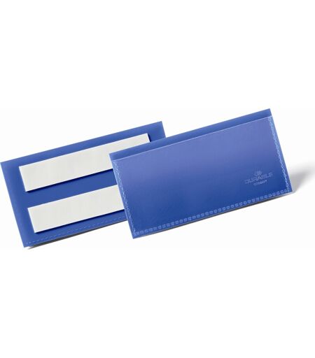 Etiketholdere med selvklæbende strips i klassisk design Lagerlommer fra Durable fremstillet med to selvklæbende strips på bagsiden, hvilket gør dem anvendelige til alle former for overflader såsom metal, karton og plast. Disse hyldeforkanter er specielt udviklet til mærkning af inventar på lageret, så din virksomhed let kan skabe et suverænt overblik over logistikken. Lagerlommerne leveres i et klassisk, mørkeblåt design med et gennemsigtigt vindue fremstillet i heavy-duty polypropylen. Essentielt tilbehør til lageret, som er rivefast og velegnet til scannere. Herudover kan du ubesværet skifte indholdet, hvis det måtte blive nødvendigt. Farve: Mørkeblå Materiale: Heavy-duty PP-plast Selvklæbende strips 1 pakke med 50 stk. lommer i alt Indvendige mål (BxH) i mm: 100 x 38 Udvendige mål (BxH) i mm: 113 x 53 ...
