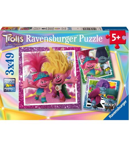 Ravensburger børnepuslespil imponerer med deres håndværk af høj kvalitet, alderssvarende størrelser på brikkerne og flotte motiver. Afhængigt af antallet af brikker er de også en spændende, langvarig puslespilssjov for småbørn. Dette sæt til børn fra 5 år indeholder tre puslespil med hver 49 brikker. Det skildrer forskellige scener og karakterer fra filmen "Trolls 3". ...