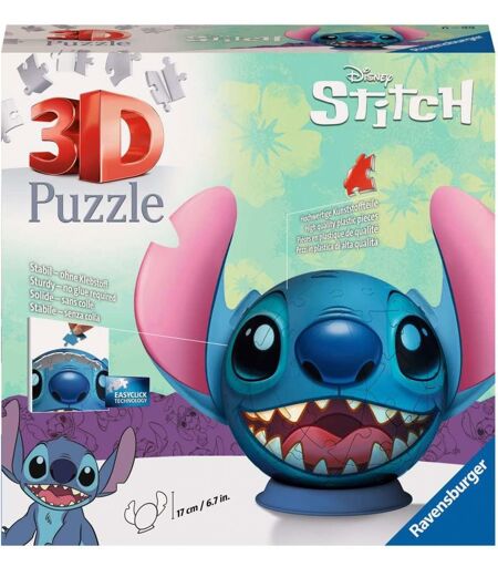 Nu kommer helten fra Disney-filmen "Lilo & Stitch" ind på børneværelset som en puslespilsbold: 3D-puslespillet består af 72 plastikbrikker. En fantastisk byggesjov for børn fra 6 år, som fuldendes af de monterbare papører. Delene passer perfekt sammen takket være EasyClick-teknologien. Nummereringen gør det nemt at sortere på forhånd og gør det nemt at pusle efter tal. ...
