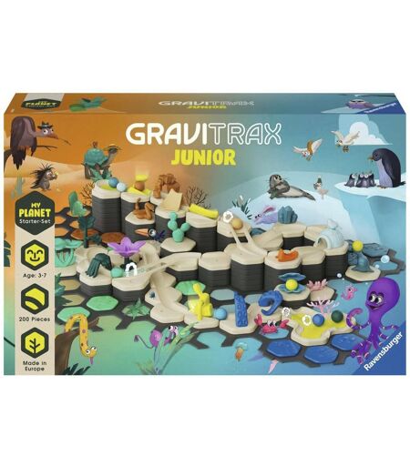 GraviTrax Junior tilbyder børn fra 3 år en nem introduktion til GraviTrax'' marmorløbeverdener. GraviTrax Junior er et interaktivt marmorløbssystem. Drenge og piger bruger det til at skabe deres egne marmorbaneverdener, der kan dekoreres fleksibelt og skabe meget individuelle temaverdener. Sjov at bygge og lege går hånd i hånd. GraviTrax Junior kan udvides efter behov med udvidelser med komponenter eller specialelementer. XXL Planet Starter Set indeholder alt, hvad du skal bruge for at bygge individuelle baner på tværs af de 4 verdener jungle, ørken og hav. ...