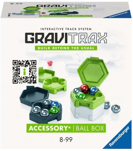 GraviTrax - det innovative modulære system til krævende marmorløb. Fra et stort antal forskellige byggesten og skinner kan actionfyldte ruter planlægges, testes og implementeres med smart brug af fysikkens love. Med de mange udvidelsessæt bliver den gratis konstruktion og design af det innovative GraviTrax-byggesystem endnu mere interessant og spændende hver gang! Flere muligheder - sjovere! Accessory Ball Box indeholder flere bolde til endnu mere sjov med kugleløb. Disse kommer i fire kasser i farverne grøn, hvid og grå, som har samme design som GraviTrax highstones. To kasser er fyldt, de to andre kasser kan bruges som opbevaring til eksisterende bolde. ...