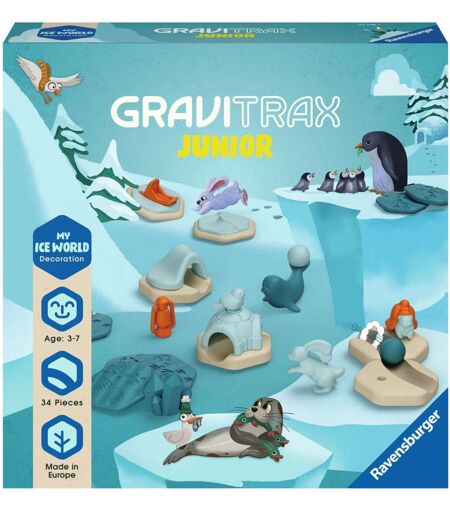 GraviTrax Junior tilbyder børn fra 3 år en nem introduktion til GraviTrax'' marmorløbeverdener. GraviTrax Junior er et interaktivt marmorløbssystem. Drenge og piger bruger det til at skabe deres egne marmorløbsverdener, som kan dekoreres fleksibelt og skabe meget individuelle temaverdener. Sjov at bygge og lege går hånd i hånd. GraviTrax Junior kan udvides efter ønske ved at tilføje komponenter eller specialelementer. GraviTrax Junior-udvidelsen Ice byder på dyrefigurer og fantastiske elementer med arktisk tema, der giver dig mulighed for at bygge en individuel bane gennem en iskold verden. ...