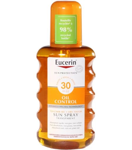 Eucerin Sun Spray Transparent SPF30 er en solspray med en oliefri, gennemsigtig formel. Let at påføre og absorberes hurtigt, virker også nemt og effektivt ved/på kropsbehåringer. Velegnet til alle hudtyper, selv fedtet hud. Vandtæt. Velegnet til alle hudtyper. SPF30. Mildt parfumeret. ...