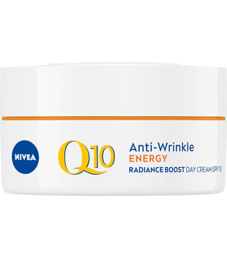 NIVEA Q10 Energy Healthy Glow Day Cream er en dagcreme beriget med tredobbelte antioxidanter: C-vitamin, E-vitamin og Q10. Produktet fugter og giver glød i op til 24 timer for en sund og strålende smuk hud. Denne energigivende ansigtscreme reducerer tegn på træt og kedelig hud, samtidig med at den reducerer fine linjer og opstrammer huden. Produktet ...