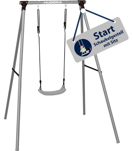 Takket være det moderne og tidløse design passer Start-gyngestativet fra HUDORA perfekt ind i enhver have. Plastbræddegyngen og justerbare gyngereb (40 til 90 cm i højden) giver mulighed for individuel justering, så de små kan gynge af hjertens lyst. Gyngen kan belastes med op til 50 kg, med den robuste ramme lavet af galvaniseret og pulverlakeret stål, der trodser alle vejrforhold. Det vejrbestandige materiale sikrer en lang levetid og sikrer, at glæden ved at gynge ikke overskygges af ydre påvirkninger. Gyngestativet leveres med 4 jordankre, der kan forankres solidt til jorden. Med en størrelse på 170 x 200 x 205 cm giver stilladset plads nok til eventyrlige gyngeaktiviteter. Det glidende, selvstændige affjedringssystem giver ekstra sikkerhed under sving. ...