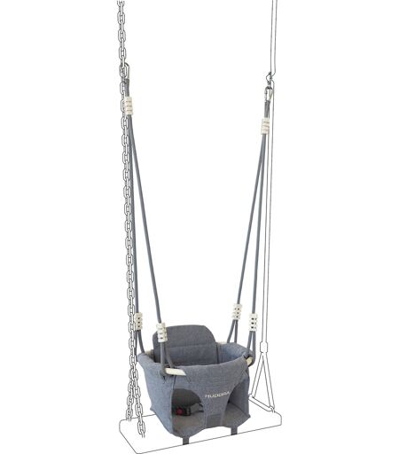 Med tekstilgyngetilbehøret Toddler fra HUDORA har småbørn fra 1 til 2 år det sjovt! Fastgørelsen er velegnet til brug på konventionelle brætgynger med kæde- eller rebfastgørelse: Den har en webbing til sikker fastgørelse til gyngbrættet og et rebophæng til fastgørelse til en eksisterende kæde eller gyngerov. Sikkerhedsselen er justerbar, så de små kan svinge sikkert. Derudover har Toddler gyngetilbehøret en kompakt transportdimension og leveres med en transporttaske. Den maksimale brugervægt er 12 kg. ...
