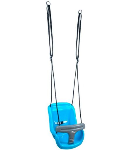 Denne gynge byder på gyngesjov for de mindste. Den todelte babygynge er lavet af massiv plast og har en aftagelig sikkerhedsbarriere foran for nem ind- og udstigning. Hvide, vejrbestandige reb med en gul kromeret stålring og et justeringsøje tillader fastgørelse til passende stilladser. På grund af den ekstra sikkerhedssele er babyen dobbelt sikret. ...